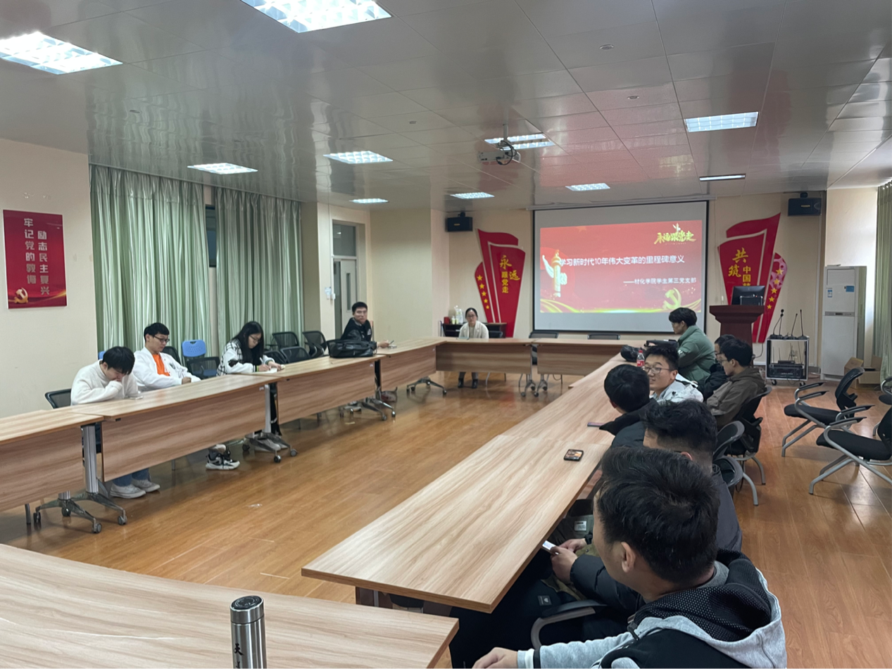 2023年3月3日下午,合肥學院能源材料與化工學院學生第三黨支部全體黨員在生化樓會議室舉辦關于學習新時代10年偉大變革的里程碑意義的主題黨課,本次會議通過學習新時代10年的偉大變革,進一步深入學習貫徹黨的二十大精神,讓每一位學員能準確把握二十大精神的核心要義,準確領悟二十大精神。