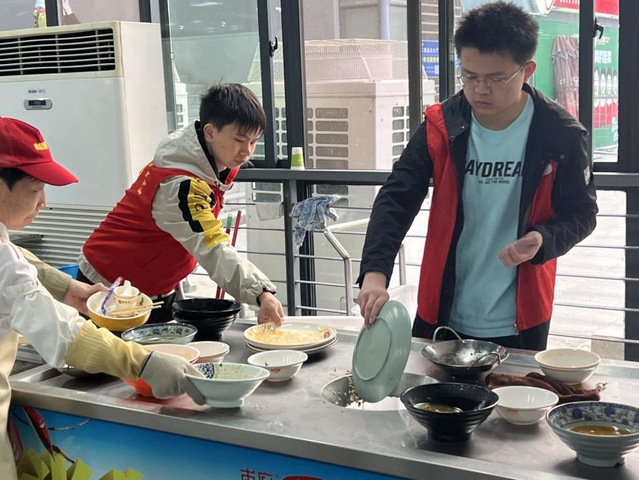 為深入學習貫徹習近平生態文明思想,以文明實踐助力文明創建,進一步提高我院學生文明素養,培育校園新風,努力營造積極向上、健康和諧的校園文明氛圍,我院決定于4月21日至25日在二、三期食堂舉辦維護食堂秩序志愿活動。在這次維護食堂秩序的志愿活動中,志愿者們不辭辛苦,幫助食堂工作人員做好衛生清理工作,彰顯新時代青年們的無私奉獻精神。