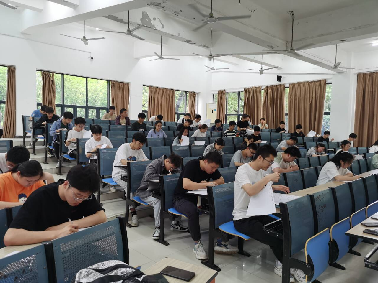 本次競賽初賽采用的是筆試選拔賽制,由競賽組委會組織出題,共有193名學生報名并參加本次比賽。開考前,考生陸續來到考點,由能源材料與化工學院團委學生會志愿團組織的志愿者負責引導進入相應考場,監考老師核對考生信息。正式開考前,監考老師宣讀考試紀律,展示試卷密封性良好。9點整,考試正式開始。考生們全神貫注,認真審題,沉著答卷。在偌大的考場之中,只能聽見紙和筆的摩擦聲。11點整,考試結束,考生停止答題,監考老師收取試卷,清點份數之后,考生們有序離場。