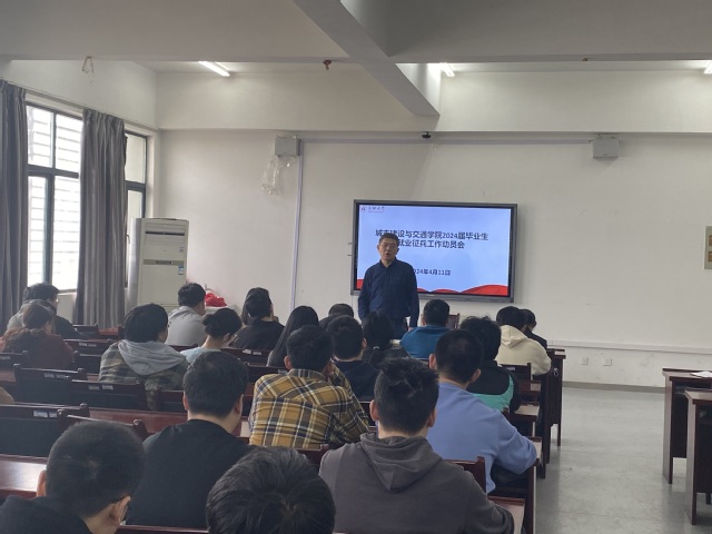 2024年4月11日中午在41棟505教室,城市建設(shè)與交通學(xué)院召開了2024屆畢業(yè)生就業(yè)征兵工作動員會,城建學(xué)院黨委書記張永軍、黨委副書記高喬楠、校黨委武裝部國防動員科科長鄭國平、畢業(yè)班輔導(dǎo)員以及2024屆未就業(yè)畢業(yè)生參加了會議。