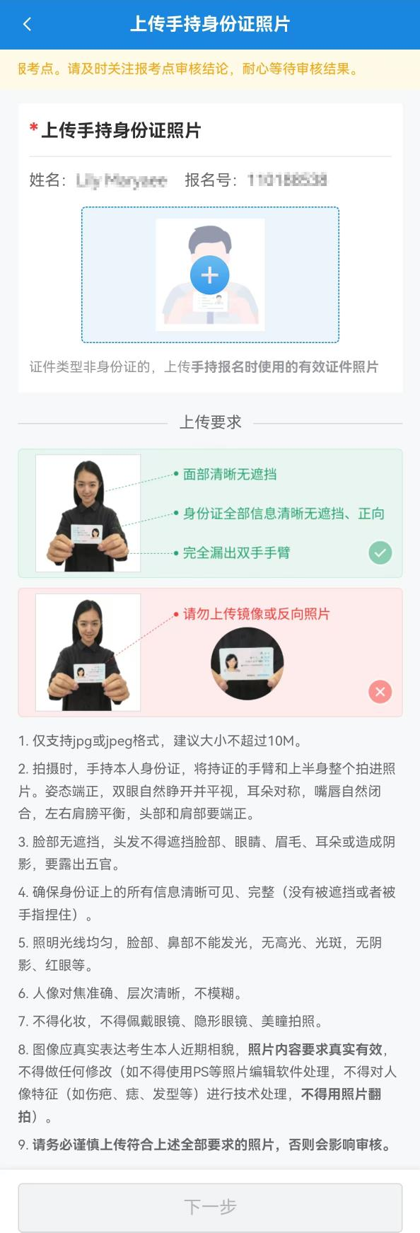 考生登錄系統后需根據系統提示按要求上傳以下兩個必須的材料原件(不得上傳復印件):