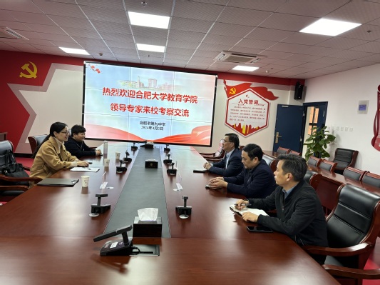 此次走訪的過程中,教育學院一行分別與合肥市第九中學和合肥皖智高級中學的校領導,高三年級主任進行了座談會議。會上,劉菂斐院長闡述了合肥大學2024年招生政策,我校辦學特色、優勢學科、人才培養質量等情況,介紹了教育學院的辦學歷史和本科專業發展情況、畢業生就業情況,并希望進一步加強雙方的交流合作,能更加精準的開展本科招生宣傳和服務對接工作。回訪過程中各地高中的校領導也就學校的發展歷程、師資力量、辦學治校和育人質量等情況進行了詳細介紹,同時肯定了合肥大學的發展態勢,反饋了近年來為合肥大學輸送的優質生源人數,高三整體學生情況及往年的一本線上線人數等,表示后續將推送更多的優秀畢業生報考合肥大學。會議最后,雙方就開展心理健康教育、實習實踐等方面的合作內容等進行了深入溝通和交流。