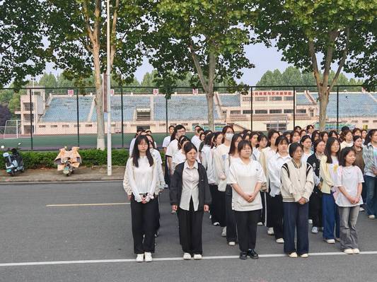 4月28日早上6時50分,參加升旗儀式的同學和新發展團員準時集合,教育學院團委學生會權益部相關負責人進行點名簽到并組織人員排列方陣。