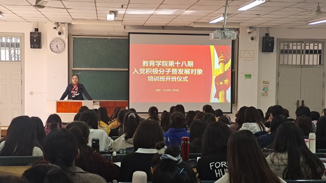 11月4日中午12:30,教育學院黨校開班儀式在3棟教學樓101教室順利舉行。開班儀式由學院副書記饒睿主持,校團委書記杜鵑老師應邀參加,入黨積極分子及本年度發展對象參加了此次會議。 開班儀式共有三項議程。第一項議程是:全體師生起立,奏唱國歌。第二項議程是:校團委書記杜鵑致辭。在講話中,她希望同學們積極努力學習科學文化知識,成為不負使命,當之無愧的黨員 。第三項議程是:杜啟明老師宣讀紀律要求。他強調了黨員的紀律性,希望同學們能夠嚴格要求自己。 開班儀式結束后,杜鵑老師開展了題為《扣好人生第一粒扣子》黨課的第一講,詳細介紹習近平總書記的青春歷程并闡述了堅定理想信念,堅定不移跟黨走的重要性。至此,教育學院開班儀式在同學們熱烈的掌聲中圓滿落下帷幕。 (教育學院記者團實習記者邢舒琪)