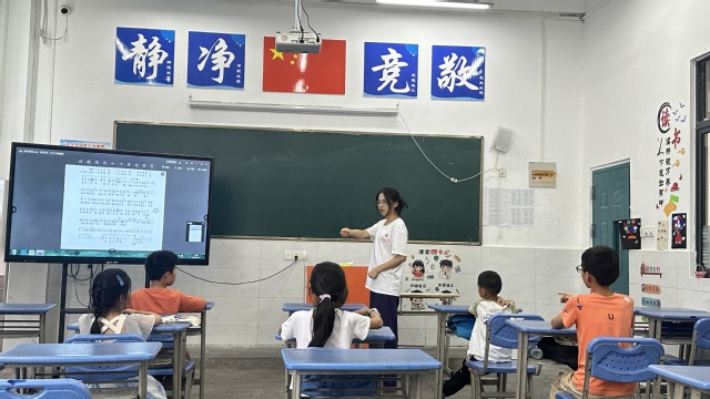 為深入學習貫徹黨的二十大精神,培育青年學生深厚的家國情懷,深深扎根人民,始終服務人民。7月5日下午,合肥大學教育學院“同筑鄉村夢,共‘育’振興果”志愿服務隊于合肥市小廟鎮蜀山行知學校開展了暑期“三下鄉”社會實踐活動,老師魯丹妮和郭艷寧為同學們帶來了“手語唱紅歌,無聲寄華夏”主題課程。 課程伊始,老師向同學們提問關于手語的知識,激發同學們的興趣,并簡單地介紹了手語的概念、在實際生活中的運用及歷史文化背景。隨后,老師向同學們展示基礎手語表達方式的圖片并播放視頻《國家》,讓同學們感受歌曲的旋律、節奏,體會歌曲的思想內涵。接著,學生跟隨老師的手勢進行模仿和練習,學習手語操的基本動作和技巧。