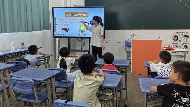 課程中,教師詳細介紹了游泳的注意事項,如何正確施救溺水的人。作為學生,在發現有人溺水時,首先要保持冷靜,然后迅速尋找周圍可用的救援工具,如救生圈、竹竿等,同時大聲呼救,尋求周圍成年人的幫助。避免盲目下水施救,將自己的安全放在第一位。 課程最后,教師就如何自救進行提問,學生們踴躍發言:“要保持冷靜,不要驚慌失措”“要尋找機會呼救”“有漂浮物時,可以抓住漂浮物”“要盡量保持頭部在水面上,利用身體的浮力支撐自己”……課堂的氣氛活躍熱烈,學生們的回答此起彼伏。他們積極參與課堂問答環節,還在課后主動詢問老師更多關于水域安全的問題。