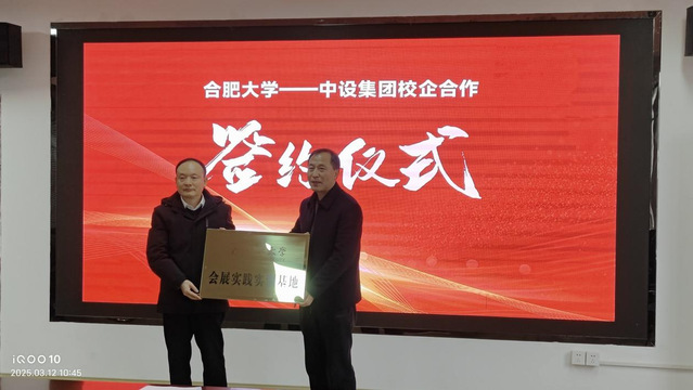 2025年3月12日,合肥大學旅游與會展學院和中設國際會展集團在中設創意產業園隆重舉行專業實習基地簽訂儀式。中設國際會展集團董事長楊杰、副總經理李冬冬、張鵬等企方代表和旅游與會展學院院長宋玉軍、院教學辦主任袁夢如、會展系主任高飛、系副主任姚靜靜及專業教師韋傳慧等校方人員共同出席本次活動。