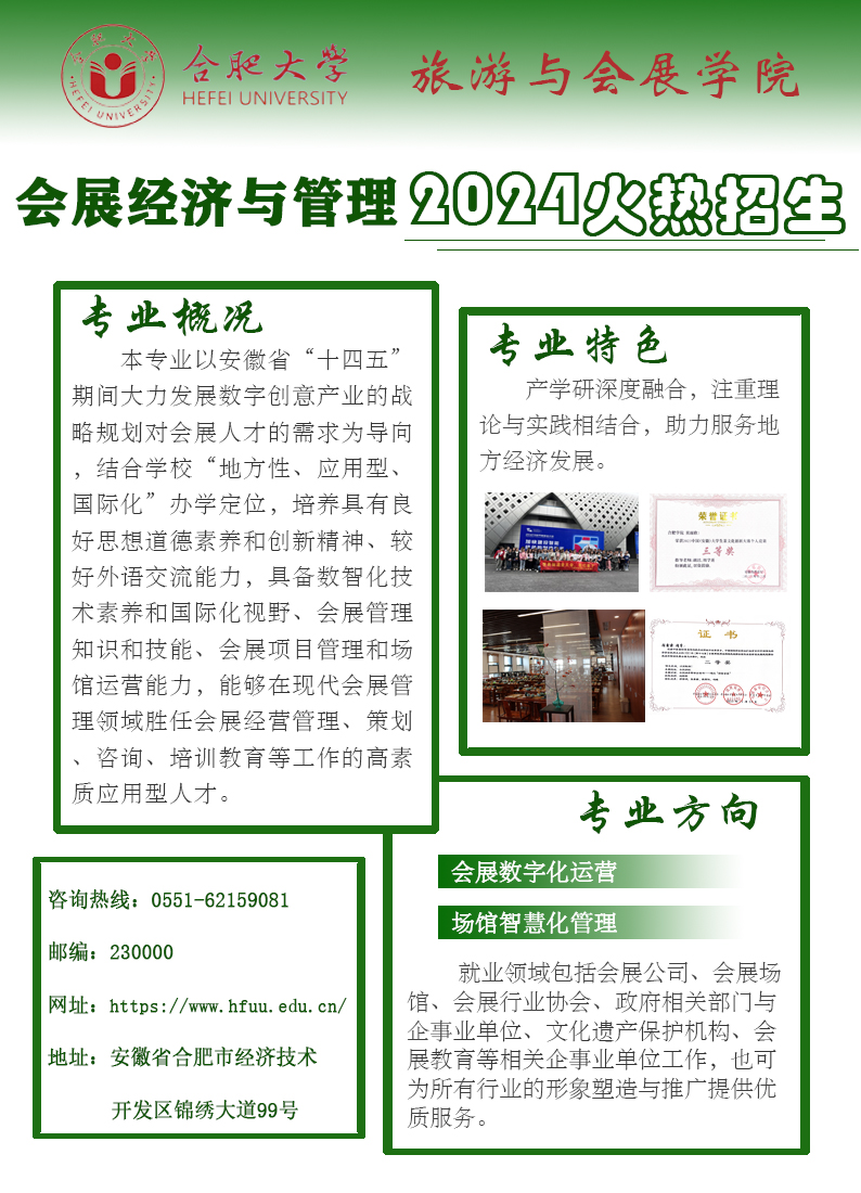 會展經濟與管理(本科) 咨詢電話:0551-62159081 招生海報: