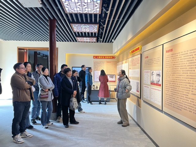 新四軍第四支隊司令舊址共有三個部分,包括200多米長的進館棧道、紅軍廣場及司令部舊址。其中司令部舊址分前廳和后廳兩大部分,前廳主要介紹了新四軍四支隊的發展歷史,配有葉挺、高敬亭等六位將軍的浮雕,以及四支隊戰士們使用的武器、戰地沙盤等展示,后廳介紹了當時主要的戰役戰斗,并以聲光電、情景再現等形式進行了展示。在講解員的帶領下,全體黨員懷著無比崇敬的心情參觀了新四軍第四支隊司令部舊址。一幅幅珍貴的歷史照片、一件件飽經滄桑的革命文物、一段段感人至深的英雄故事,生動再現了新四軍將士們英勇抗戰的光輝歷史,讓大家深刻感受到革命先輩們堅定的理想信念、頑強的斗爭精神和崇高的愛國情懷。
