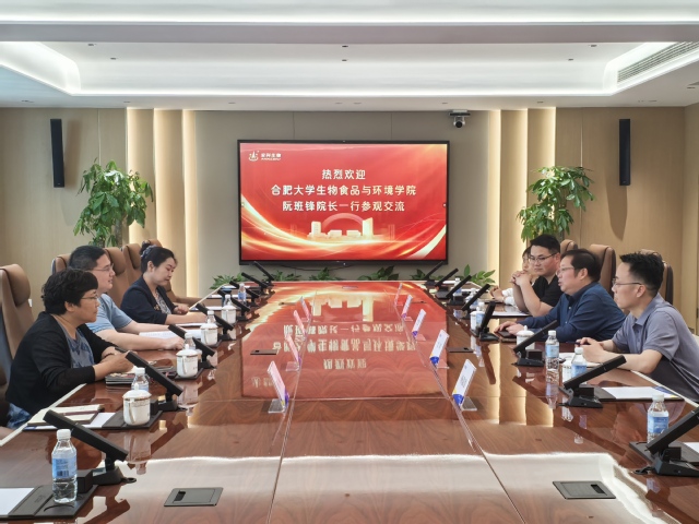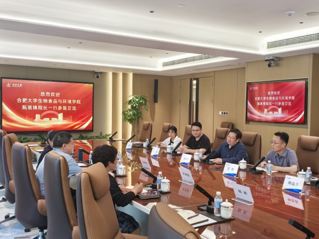 隨后,生物學(xué)院一行與安科生物公司集團執(zhí)行總裁姚建平、營銷中心兒科事業(yè)部副總經(jīng)理雷明等人在會議室開展交流。姚建平對生物學(xué)院一行的到來表示熱烈歡迎,并詳細介紹了公司的核心產(chǎn)品、主營業(yè)務(wù)、前沿科技以及產(chǎn)業(yè)布局等情況,并表示希望與合肥大學(xué)開展包括學(xué)生就業(yè)、科學(xué)研究等方面長期、穩(wěn)定的合作。李秀娟介紹了合肥大學(xué)校史、辦學(xué)情況及學(xué)院學(xué)科建設(shè)情況,詳細介紹生物工程專業(yè)的發(fā)展歷程、重點研究方向以及部分校企合作項目。