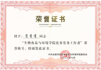 肖青青同志2017年9月步入合肥學(xué)院生物食品與環(huán)境學(xué)院開始從事食品質(zhì)量與安全專業(yè)的教研工作。入校后,先后了《食品工程原理》、《食品包裝》、《食品檢測與分析》、《食品安全檢測》、《食工原理課程設(shè)計》五門課程的教學(xué)工作。目前,擔(dān)任食品工程系主任、食安專業(yè)負責(zé)人、食安教工黨支部書記、2017級環(huán)境工程研究生輔導(dǎo)員,協(xié)助完成院系的各項教學(xué)管理工作,并積極開展課程思政教學(xué)工作和宣傳;同時,對待學(xué)生悉心教導(dǎo)、耐心指導(dǎo),引導(dǎo)學(xué)生向上向善,以積極的正能量扎實潛心學(xué)習(xí)和鉆研,盡力為學(xué)生提供實習(xí)實踐機會,鍛煉學(xué)生適應(yīng)社會和行業(yè)需求的能力;在疫情期間,積極安排食品專業(yè)的線上教學(xué)工作和開展每日教學(xué)檢查工作,保障食品專業(yè)的課程的教學(xué)質(zhì)量和進程。業(yè)務(wù)工作中教學(xué)積極采用新的教學(xué)方式,積極組織專業(yè)青年教師參加課程思政講課比賽,并獲得校級三等獎。在產(chǎn)教融合方面,積極開展訪企拓崗和校企合作,與安徽省農(nóng)業(yè)科學(xué)院、安王仁和米線、新希望乳業(yè)、黃山市佳龍綠色食品有限公司等企事業(yè)單位積極開展了實踐就業(yè)基地建設(shè)。科研方面主持完成國家自然科學(xué)基金青年基金項目、安徽省自然科學(xué)基金、國家重點研發(fā)計劃子課題等項目。生活中以身作則,積極走訪認知實習(xí)單位和走上工作崗位的畢業(yè)生,貫徹執(zhí)行立德樹人的教學(xué)宗旨,用自己的真誠和熱心把黨組織的關(guān)懷傳輸給身邊的教師和學(xué)生。2020年主持省級質(zhì)量工程項目校企實踐教育基地1項、主持省級雙基示范教學(xué)組織1項、主持省級質(zhì)量工程課程思政課程1門、校級課程思政課程1門。2019年度、2020年度獲合肥學(xué)院考核優(yōu)秀;2019年度獲“教學(xué)質(zhì)量考核優(yōu)秀”。2022年指導(dǎo)學(xué)生參加全國食品仿真大賽獲二等獎。2020年度,作為專業(yè)主任所負責(zé)的食安教研室被評為合肥學(xué)院2019年度及疫情期間“教學(xué)管理先進集體”稱號。2022年獲得校級“就業(yè)先進個人”獎。
