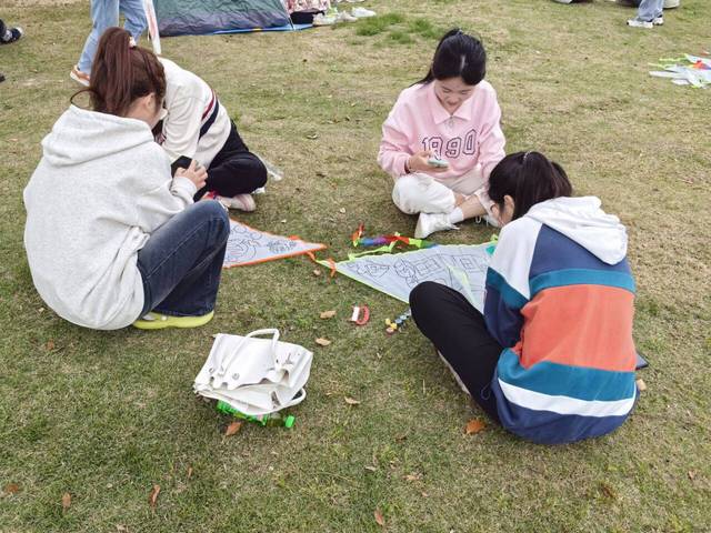 本次活動的目的是讓同學們在繁忙的生活中找到一次與自然親近的機會,通過親手制作風箏的過程,感受到內心的平靜與愉悅。在活動中,同學們每兩人一組領取風箏進行DIY設計,這不僅是一次放松身心的機會,更是一次釋放心靈的旅程。同學們用由學院提供的風箏和顏料,發揮自己的創意,將風箏裝飾得五彩斑斕。當風箏隨風飛舞時,他們發現內心的煩惱也隨之飄散,留下的是一片寧靜與歡樂。這次活動得到了大家的熱烈響應和積極參與,同學們紛紛表示,通過這個活動,他們不僅釋放了內心的壓力,還找到了與朋友共享的樂趣,感受到了生活的美好。