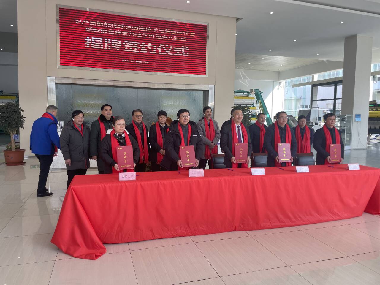 會上,安徽捷迅光電技術(shù)有限公司首席技術(shù)官高春介紹了農(nóng)產(chǎn)品智能化綠色質(zhì)選技術(shù)與裝備創(chuàng)新開發(fā)情況,安徽捷迅光電技術(shù)有限公司長期以來堅持科技創(chuàng)新,先后獲批首批工信部重點支持小巨人企業(yè)、首批國家級專精特新小巨人、國家級技術(shù)創(chuàng)新示范企業(yè)等榮譽(yù)稱號,牽頭建設(shè)安徽省工程研究中心等多個省級創(chuàng)新平臺,承擔(dān)過安徽省科技重大專項、重點領(lǐng)域補(bǔ)短板等多項科研課題,取得多項顯著成果。目前,云質(zhì)選裝備已全面覆蓋農(nóng)產(chǎn)品精深加工、礦石類和再生資源回收利用等眾多領(lǐng)域,產(chǎn)品暢銷全球80多個國家和地區(qū)。李秀娟書記首先發(fā)表了觀后感,感受到安徽捷迅光電技術(shù)有限公司科技興農(nóng)和強(qiáng)勁的發(fā)展勢頭,同時簡單介紹了合肥大學(xué)以及生物食品與環(huán)境學(xué)院情況以及學(xué)校辦學(xué)定位、專業(yè)設(shè)置情況等,指出為了堅持科技興農(nóng)、質(zhì)量興農(nóng)、綠色興農(nóng),切實加強(qiáng)校企之間的產(chǎn)學(xué)研深度合作,企業(yè)的發(fā)展離不開人才的培養(yǎng)與發(fā)展;隨后介紹了本次訪企拓崗促就業(yè)專項行動的背景和目的,表示通過落實教育培養(yǎng)人才,服務(wù)社會,服務(wù)國家的重要社會責(zé)任。公司負(fù)責(zé)人介紹了公司的基本情況和企業(yè)2024年人才招聘需求情況,雙方在已有良好合作的基礎(chǔ)上,就人才需求與實踐實習(xí)基地以及深入開展推進(jìn)畢業(yè)生就業(yè)進(jìn)行深入交流。隨后肖青青主任介紹了食品工程系的師生情況,以及科研團(tuán)隊目前研究方向等,并作為代表簽署了校企合作共建重點實驗室合作意向。出席此次揭牌儀式的有新站區(qū)黨工委委員、管委會副主任王斌,中科院合肥物質(zhì)院智能所常務(wù)副所長宋全軍,安徽省科技廳創(chuàng)新基地處一級調(diào)研員周曉輝等。原安徽省農(nóng)業(yè)科學(xué)院院長、研究員、博導(dǎo)楊劍波,原農(nóng)業(yè)農(nóng)村廳一級巡視員、安徽省綠色食品產(chǎn)業(yè)發(fā)展服務(wù)聯(lián)盟名譽(yù)理事長王華,捷迅光電董事長高小榮,安徽省綠色農(nóng)產(chǎn)品質(zhì)量安全管理站(綠色食品管理辦公室)站長劉成美,捷迅光電常務(wù)副總經(jīng)理陳振林共同為實驗室揭牌。