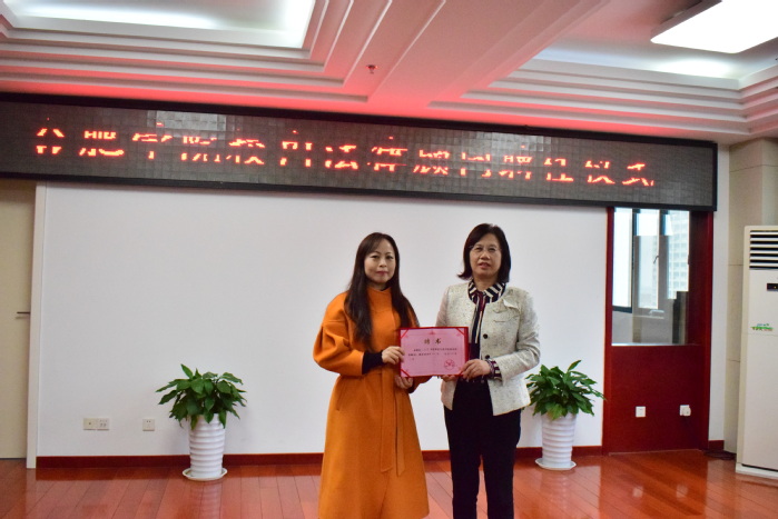 儀式上,吳春梅為陳江華、吳曉紅、江玉榮三位法律顧問頒發聘任證書。