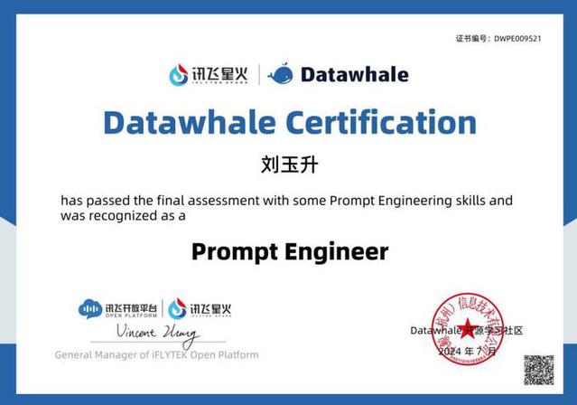 20246月至9月,在導師推薦下,劉玉升通過選拔進入科大訊飛股份有限公司訊飛數碼研究院實習,深度參與了訊飛星火大模型的研發工作,主要負責Prompt工程優化任務。憑借扎實的專業基礎和出色的工程能力,他系統性地完成了各類任務的整編工作,通過深入分析客戶需求,制定了差異化的Prompt優化策略。在數據處理層面,他運用Python對訓練數據進行清洗與統計分析,成功構建了包含10萬余條的高質量SFT數據,覆蓋33個具體任務場景。此外,他還參與了大模型效果的評測工作,為后續模型的迭代優化提供了支持。