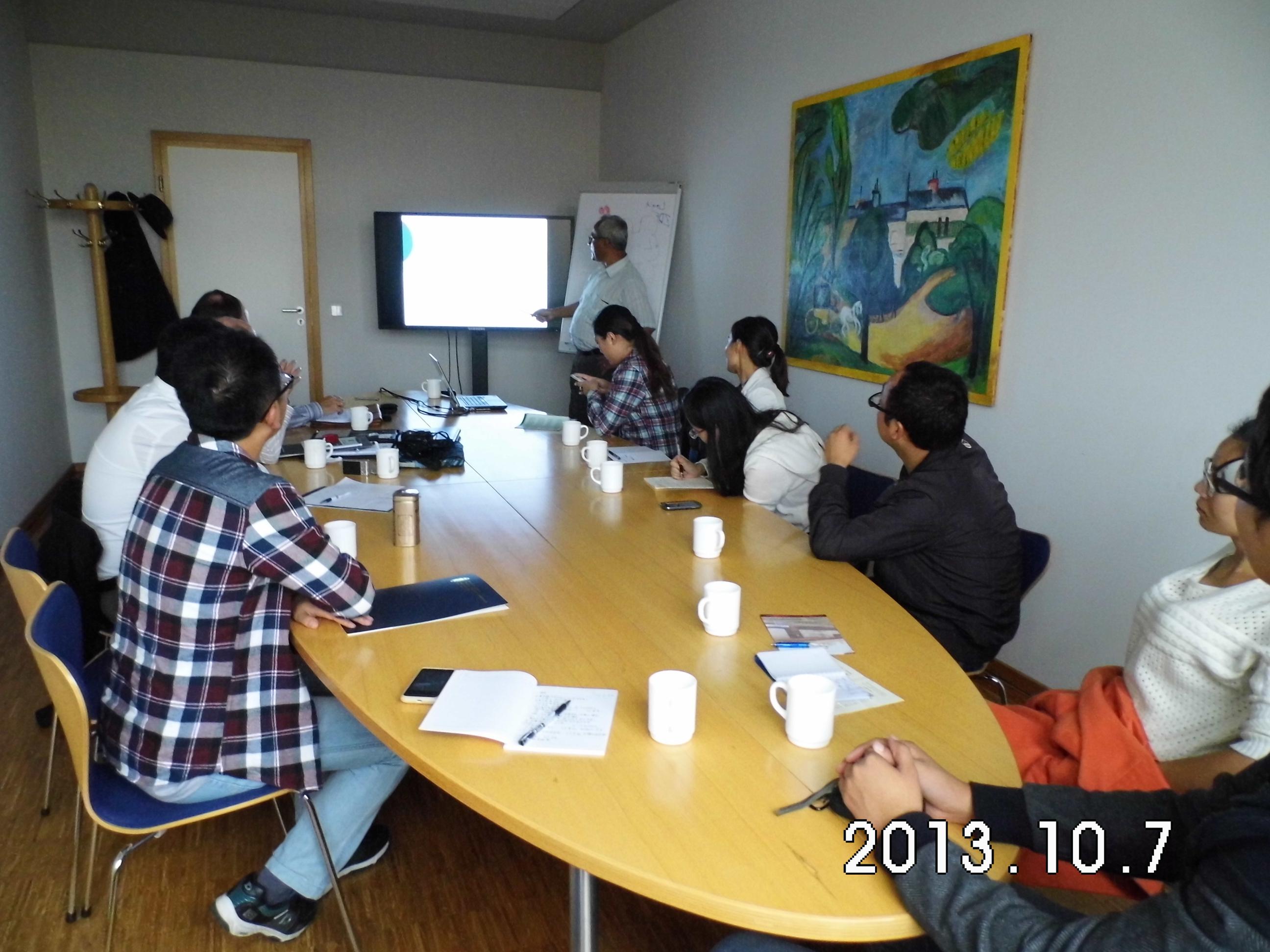 107日到達哥廷根應用科學大學,呂文教授給同學們講授有關可再生資源(生物能、風能、水能、日光能)知識及其在德國的應用在哥廷根應用科學大學學習期間,同學們主要學習并參觀了可再生能源知識及其在德國的應用在該校可再生資源管理系呂文教授科研團隊的指導下,同學們對可再生資源及其應用從理論到實踐環節得到全方位的體驗隨后的8-11日,同學們主要參觀了相關的可再生能源企業主要有云德生物能源村、壁爐用生物能生產企業、垃圾生產沼氣廠、水力發電站、風力發電站、木屑能源生產企業