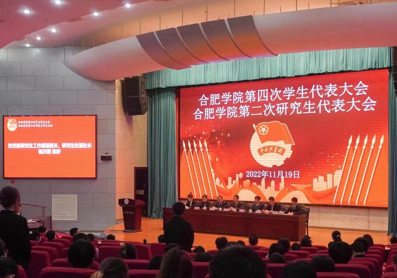 11月19日上午8:30,合肥學院第二次研究生代表大會于圖書館學術報告A廳正式開幕,本次會議共有70名研究生代表參與。開幕式上,校黨委研究生工作部副部長,研究生處副處長楊慶國發表講話,他簡述了近年來合肥學院在研究生培養方面取得的成就,目前在校研究生規模已經突破了1000人大關。之后,校黨委委員,黨委副書記劉建中也對我校在研究生培養方面取得的成果表示了充分肯定,同時要求研究生要認真學習黨的二十大精神,做有擔當的新時代青年!