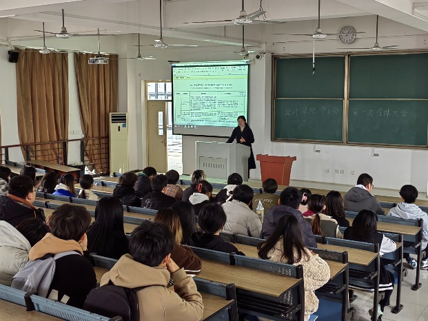 3月14日中午13點,設計學院學生會第二次全體大會在41棟三階梯召開,此次會議由設計學院團委書記吳嫻老師主持,設計學院學生會全體成員參加此次會議。