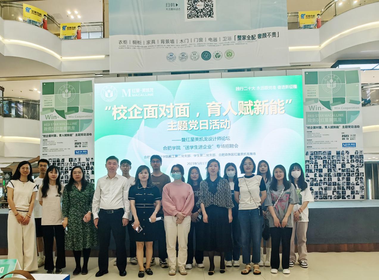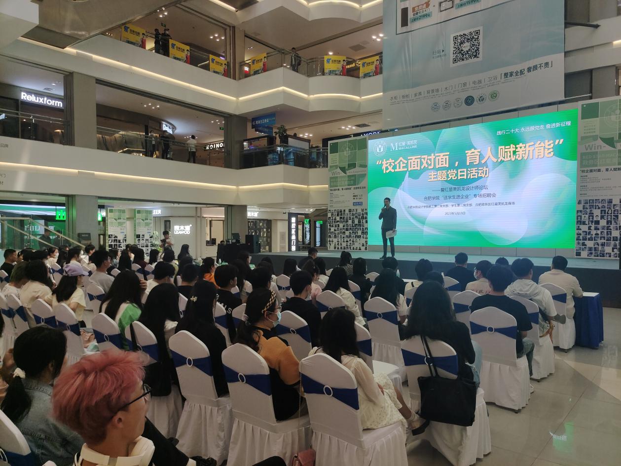 提升設計學院教工、學生黨支部建設水平,發揮黨員特色服務先鋒作用,進一步拓寬畢業生就業渠道,提升精準就業服務水平,513日,合肥學院設計學院教工第二黨支部、學生第二黨支部聯合紅星美凱龍在政務區紅星美凱龍商場舉辦了校企面對面,育人賦新能”主題黨日活動暨紅星美凱龍設計師論壇。設計學院教工第二黨支部書記、空間設計系主任水源、徐賢如、呂琴琴、張行舟等專業老師出席,學生第二黨支部全體黨員參加。