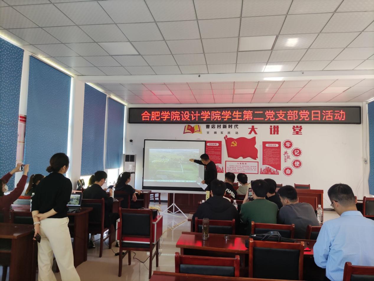同時合肥學院設計學院教工第二黨支部、學生第二黨支部、義井鎮曹店村黨總支聯合開展主題黨日活動,活動中由曹店村老黨員代表向年輕黨員傳授基層經驗,合肥學院教職工黨員代表領學二十大報告心得體會和黨章,最后大家圍繞和美鄉村規劃思路、基層產業發展后勁等內容開展座談。對標優秀基層組織建設比學趕超,以設計下基層為主線促進曹店村鄉村振興科學發展。