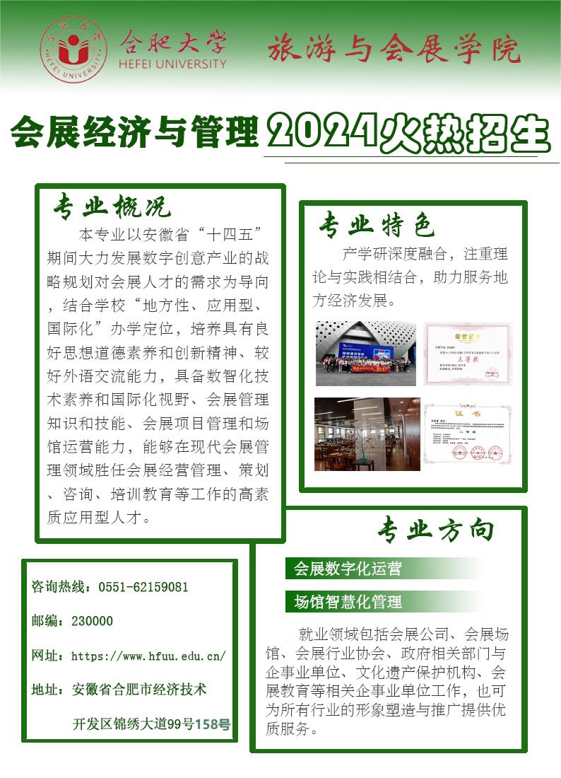 會展經濟與管理(本科) 咨詢電話:0551-62159081