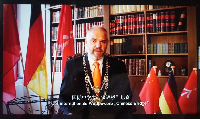 亞歷山大·巴德羅在視頻致辭中說(shuō),施特拉爾松德孔子學(xué)院成立5年來(lái),始終致力推廣中國(guó)語(yǔ)言文化,成效顯著。“漢語(yǔ)橋”比賽不僅激勵(lì)有語(yǔ)言天賦的學(xué)生努力學(xué)習(xí)中文,而且為德中兩國(guó)文化交流搭建了友誼之橋。