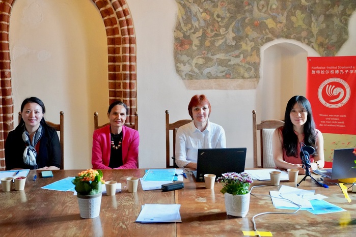 本屆比賽評(píng)委在施特拉爾松德孔院現(xiàn)場(chǎng)