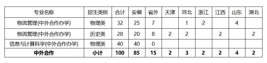 注:中外合作專業授予學位指我校授予學位類型。中外合作專業詳情參見《合肥大學2024年中外合作專業招生簡章》。以上招生計劃如有變動,請以安徽省考試院公布為準。