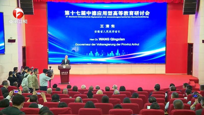 王清憲在致辭中表示,今年是安徽省與下薩克森州結好40周年,多年來安徽主動融入中德合作大局,在制造業、高等教育等領域取得了豐碩合作成果。雙方以合肥大學為依托,借鑒德國“雙元制”經驗,探索專業、就業、產業相融合的應用型人才培養模式,為中德雙方企業輸送了大量高素質應用型人才,成為中德應用型高等教育合作的典范。希望中德雙方應用型高校加強對接,在學術研討、科技研發、人才培養等更多領域,建立交流合作機制,探索企業出題、中德高校合作破題的產教融合機制,構建更多“嵌入式”產學研合作平臺,培養更多高素質、應用型創新人才。