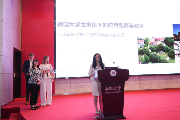 奧斯納布呂克應用科學大學的陳穎教授與雙元制學生團隊以奧斯納布呂克應用科學大學為例分析了德國大學生視角下的應用型高等教育,分享了中德雙元制高等教育發展成果。