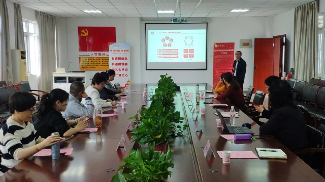 交流會上,儲昭輝首先對陸艷一行來學院考察交流表示熱烈歡迎,然后通過PPT詳細介紹了學院黨建工作情況及特色做法。學院教工第一黨支部書記洪婧介紹了星級黨支部建設、“雙帶頭人”黨支部書記工作室建設情況。雙方還圍繞黨建品牌創建、黨建引領發展等工作進行了深入交流。