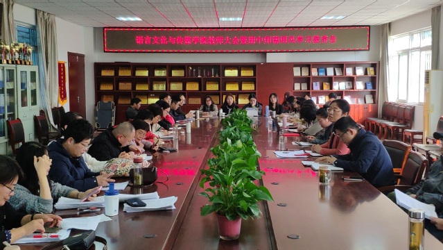 115日下午,語言文化與傳媒學院在五棟二樓會議室舉行了全院教師大會暨期中師德師風學習教育會,學院領導班子成員及全體教職工參加會議。