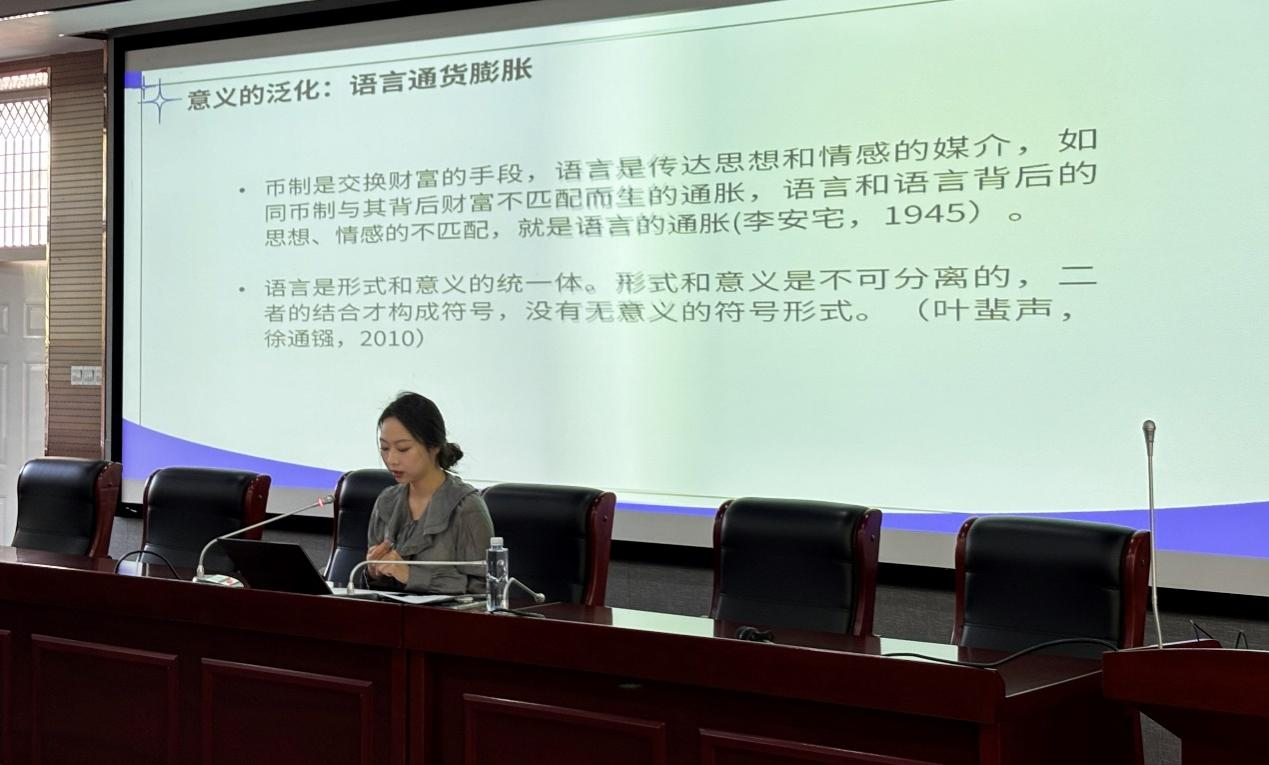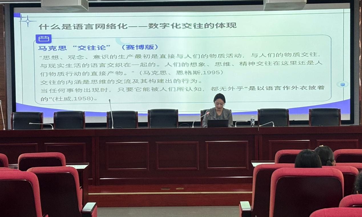 2025年4月29日下午,以“語言網(wǎng)絡(luò)化與媒介化思維的辯證之思”為主題的合肥大學(xué)2025年研究生學(xué)術(shù)沙龍系列講座在一期學(xué)術(shù)報(bào)告廳舉辦。本次講座由語言文化與傳媒學(xué)院23級(jí)碩士研究生趙天琪主講。語言文化與傳媒學(xué)院23級(jí)、24級(jí)碩士研究生,部分本科生參加。