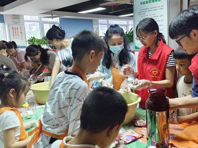 911日下午3:40,志愿者們抵達竹園社區開展中秋游園會活動。在負責人的引領下,志愿者們各司其職,確保現場秩序井然,并協助孩童制作中秋月餅、進行扎染和繪制月球燈,為他們編織了歡樂與溫情交織的記憶。活動結束后,志愿者們主動清理現場,保護社區的優美環境。