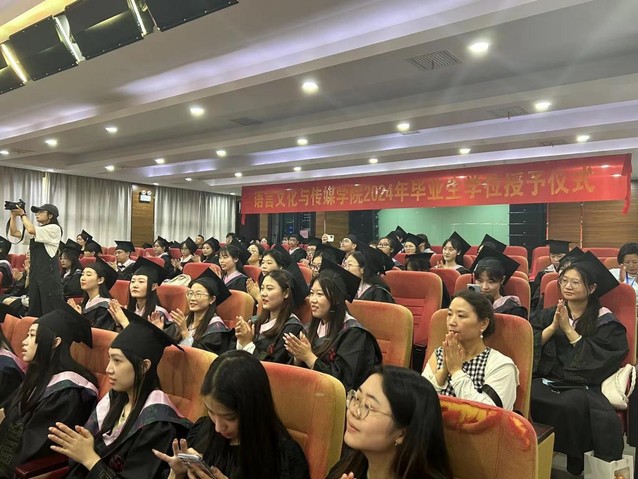202473日上午10:30,合肥大學語言文化與傳媒學院2024屆畢業生學位授予儀式在一區博學樓C座學術報告廳舉行,出席儀式的嘉賓為語言文化與傳媒學院的學院領導和學院學位評定委員會成員。