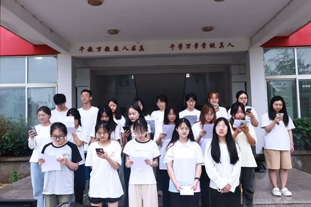 下午三點,所有成員再次練習了合唱曲目《如愿》,并在教學樓門口的臺階上進行正式的錄制。經過幾天的練習,成員們已經對歌詞十分熟悉,并且能完美配合旋律節奏,嘹亮的歌聲回蕩在整個校園里。