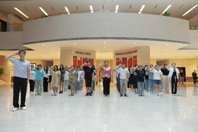 活動(dòng)伊始,在文傳學(xué)院第二黨支部書記柳守志老師的帶領(lǐng)下,支部全體黨員重溫了入黨誓詞,在渡江戰(zhàn)役的巨大浮雕之前,全體黨員們重新加深了對(duì)于誓詞的理解,并更加堅(jiān)定了一心向黨的崇高信念,始終保持絕對(duì)忠誠、維護(hù)核心的政治定力;始終堅(jiān)持人民至上、為民服務(wù)的根本宗旨;始終銘記干在實(shí)處、走在前列的使命擔(dān)當(dāng)。