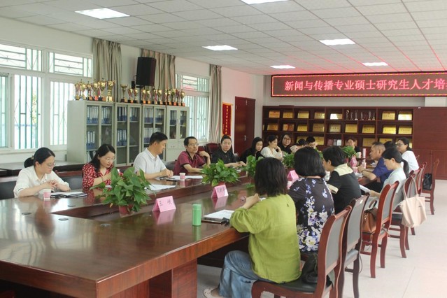 6月16日上午9時許,語言文化與傳媒學院于在一區善思樓C座二樓會議室舉行新聞與傳播專業碩士研究生人才培養方案論證會。學院高度重視本次論證會,邀請安徽大學新聞傳播學院院長姜紅教授,安徽師范大學新聞與傳播專業碩士點負責人朱曉凱教授,及合肥日報傳媒集團黨委委員、副總編輯楊穎,合肥日報編委、合肥日報傳媒集團采訪中心主任張春林等專家蒞臨指導,語言文化與傳媒學院院長丁增武、副院長查金萍,校研究生處副處長楊慶國,新聞與傳播碩士點負責人郭靜及碩士點相關導師共同參會。
