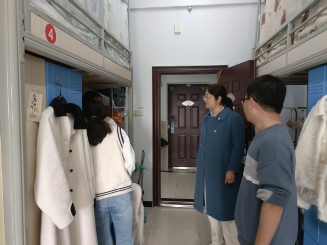 走訪過程中,老師們與同學(xué)們親切交談,詳細了解他們的學(xué)習(xí)和生活情況,叮囑同學(xué)們要提高防范電信詐騙意識,注意自己的人身和財物安全,注意預(yù)防各類春季流行病等。張愛萍書記特別強調(diào)同學(xué)們要遵守校規(guī)校紀(jì),不要使用大功率電器;寢室同學(xué)應(yīng)相互幫助,發(fā)現(xiàn)身邊的同學(xué)面臨就業(yè)困難、情感問題、焦慮情緒等,要及時給予關(guān)心,并尋求輔導(dǎo)員和老師的幫助。