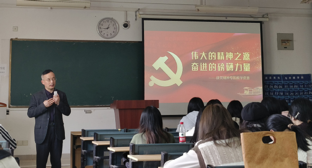 儀式結束后,校黨委組織部副部長、離退休工作處副處長馬保衛以《偉大的建黨精神》為主題,圍繞習近平總書記精辟概括提出的偉大建黨精神:“堅持真理、堅守理想,踐行初心、擔當使命,不怕犧牲、英勇斗爭,對黨忠誠、不負人民”,結合黨史與典型人物,給培訓班學員上了生動一課。